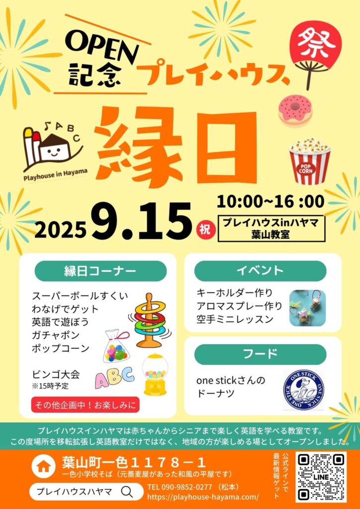 当日は、逗子のキッズカフェで大人気だった「プレイハウス縁日」の葉山バージョンを開催!